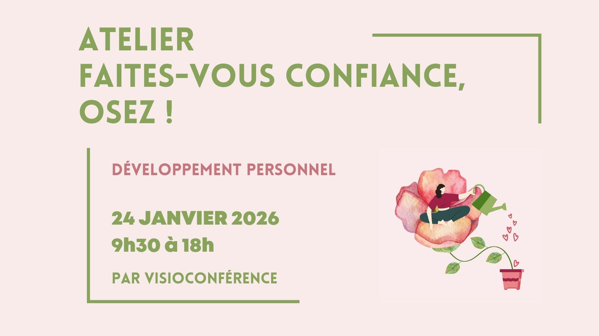 🏷️ 30 € par personne (27 € tarif réduit sur justificatif). Un minimum de 3 personnes inscrites par atelier est requis.